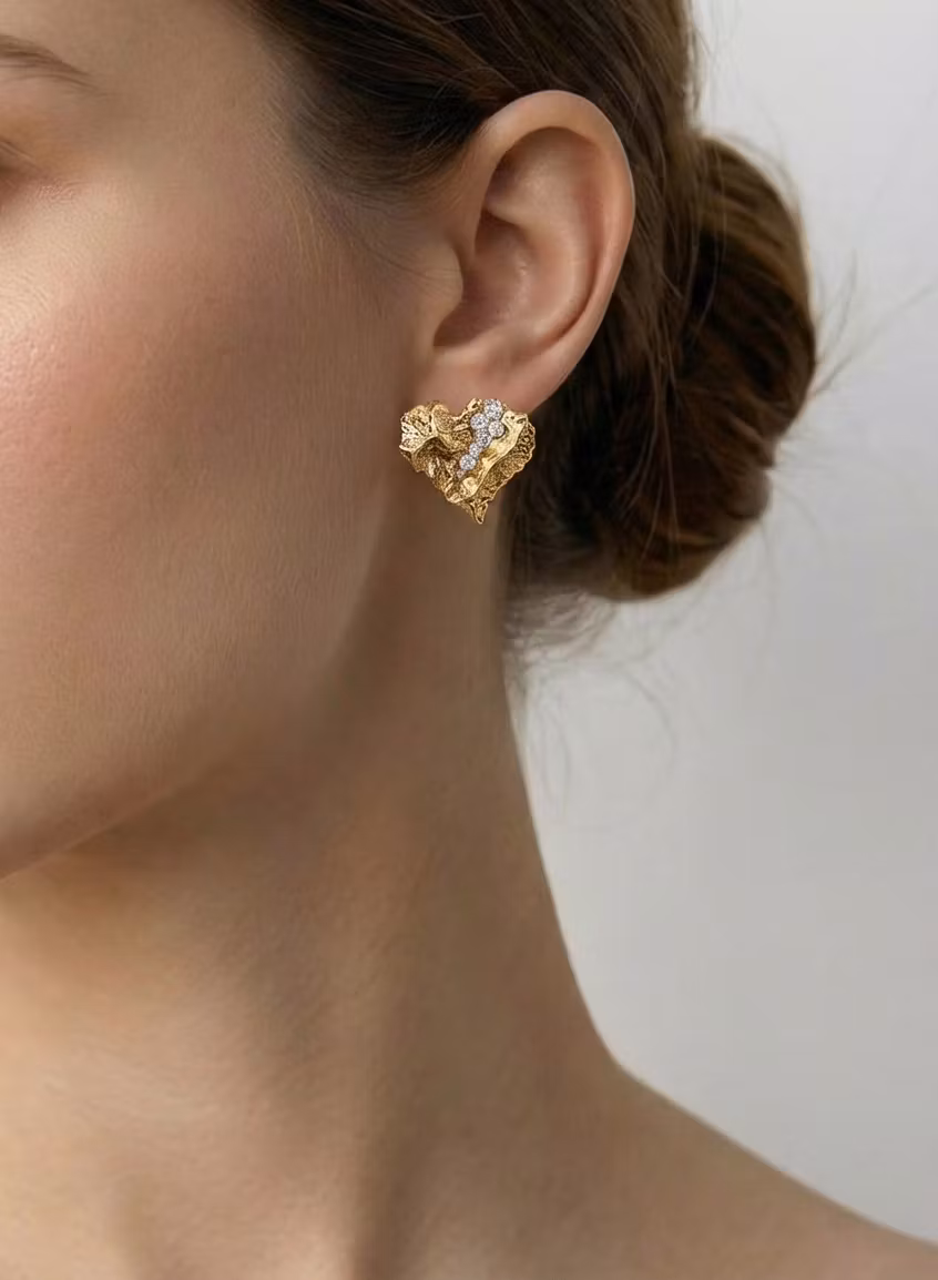 Hand-finished to preserve the organic irregularity of each crack and crevice. The placement of each zirconia is unique—no two hearts are exactly alike, making your earrings a singular expression of timeworn beauty, reborn.