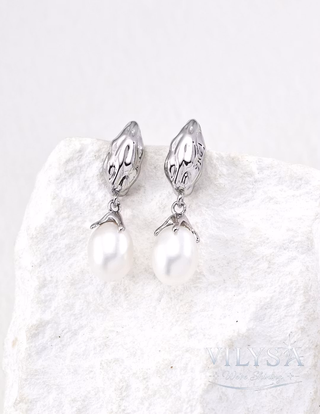 Hand-finished to highlight the contrast between textured metal and smooth pearl. Each pearl is unique in shape and luster, ensuring your earrings are a one-of-a-kind pair of organic artistry.