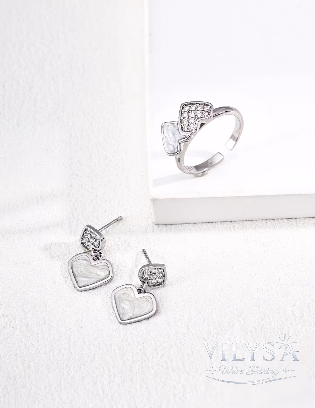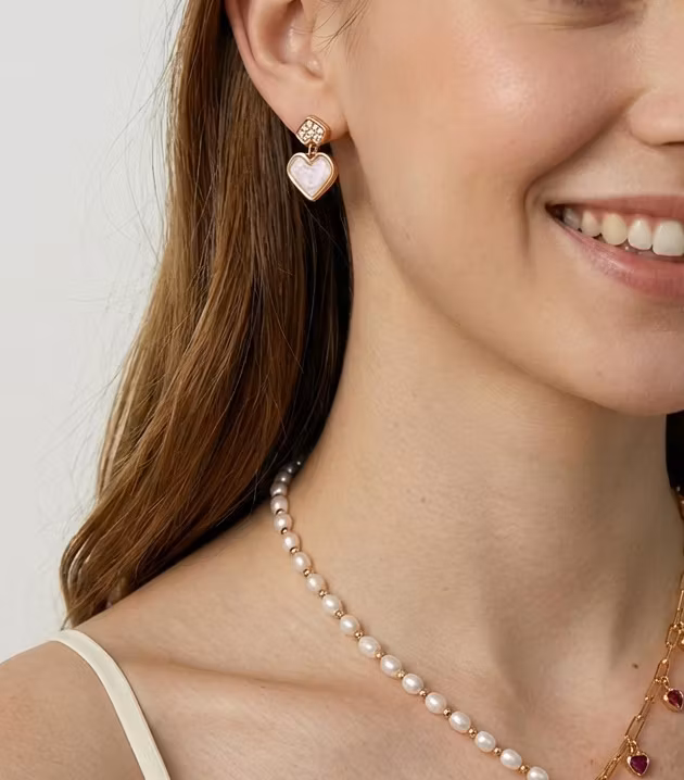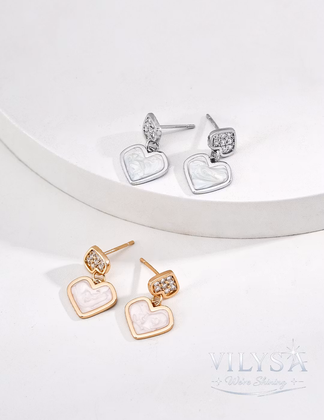 ・Heart Drop: Enamel-filled, choose from Soft Pink or Marbled White