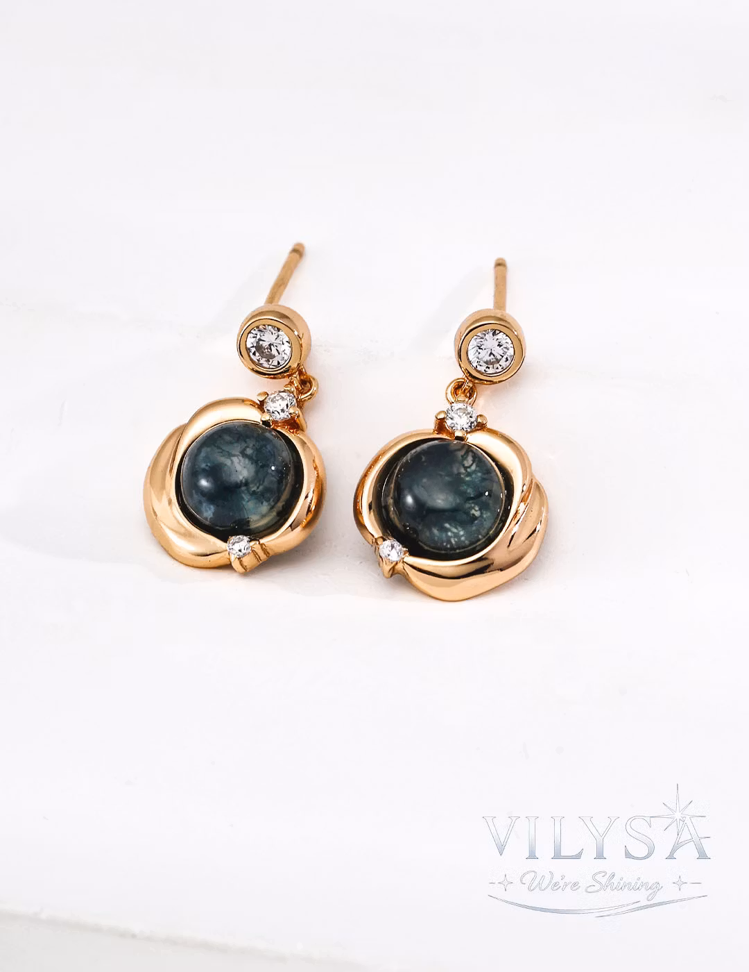 ・Style: Fluid bezel drop earrings