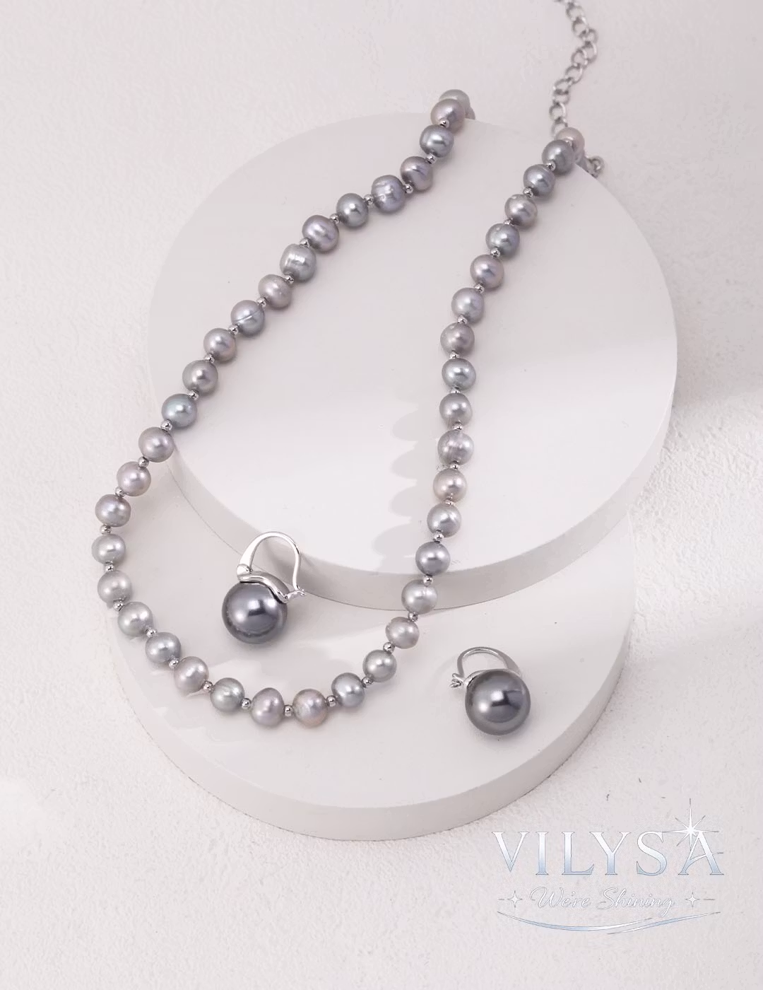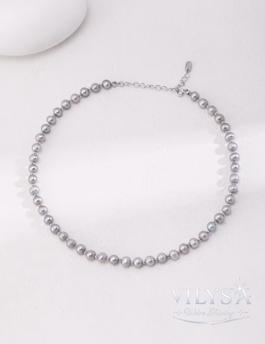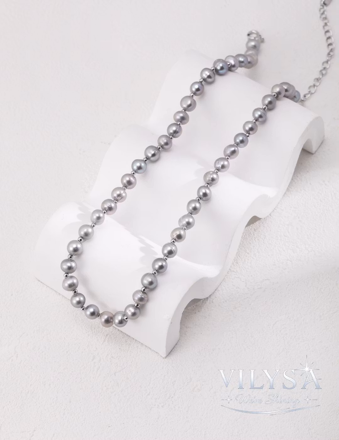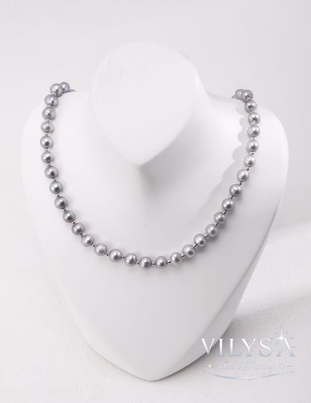 Embrace a luminous, minimalist elegance with Gray Glow. This necklace is crafted from a full strand of smooth, platinum-gray natural pearls, delicately spaced with fine silver-toned beads for a look of timeless, understated luxury.