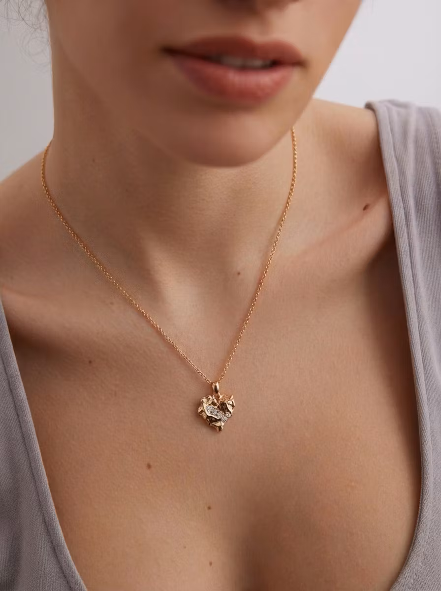 Inspired by the raw, weathered beauty of natural rock, this heart-shaped pendant is both understated and deeply evocative. Its surface is etched with stone-like cracks and fissures—each line a quiet record of time, pressure, and transformation. Nestled within these textured crevices, sparkling cubic zirconia emerge like gemstone crystals formed slowly, patiently, over millions of years.