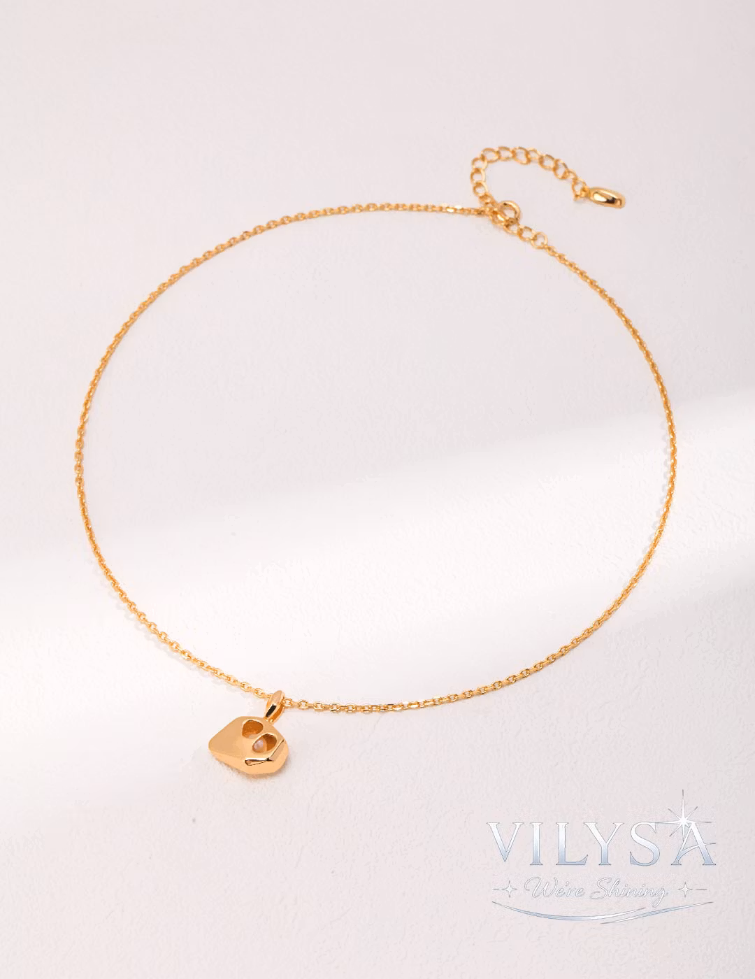 Each pendant is individually crafted. Variations in the pearl’s luster and the unique cut of the hollow frame ensure your necklace is a distinctive piece of modern jewelry.