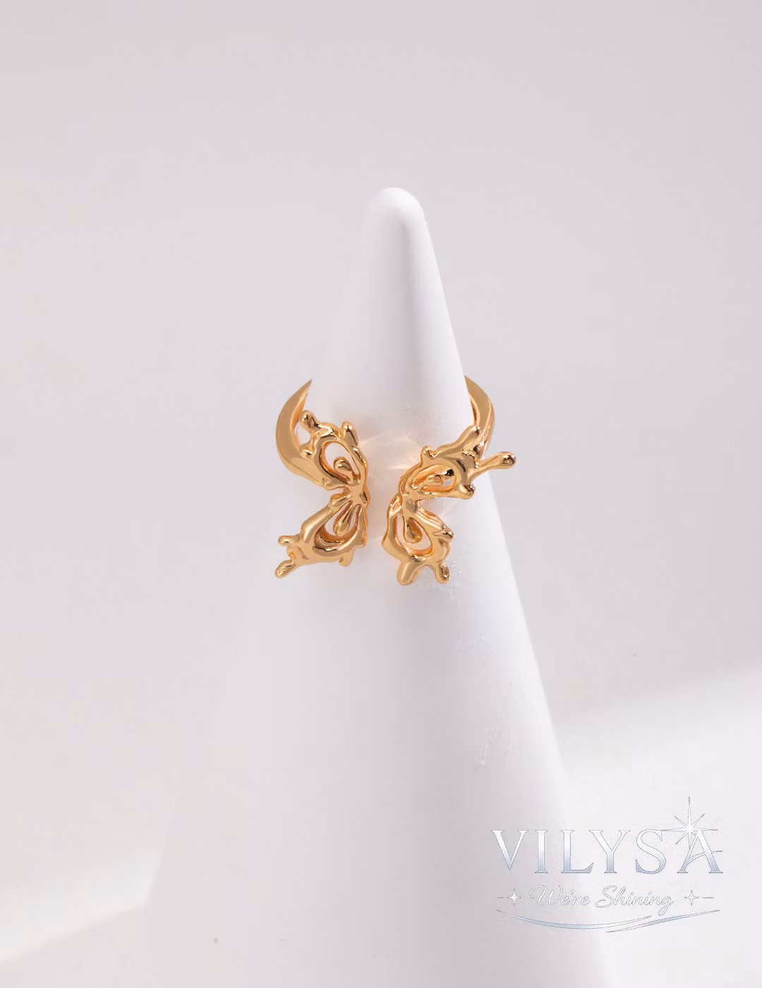 Crafted in either warm antique gold or cool white gold, the open silhouette allows for a gentle, personalized fit, adapting to the finger with quiet ease. Lightweight and intimately scaled, it rests on the hand like a whispered secret—a modern talisman for those who embrace change, who find beauty in the unfolding, who understand that the most profound transformations often begin with the smallest movements.