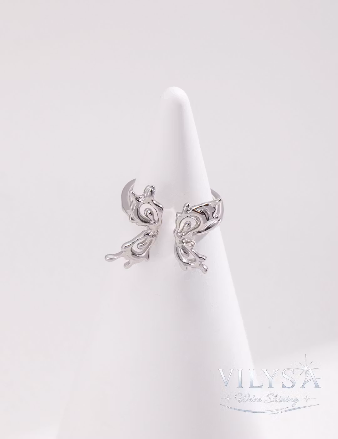 The butterfly is precisely sculpted to capture the delicate geometry of wings in flight. The open band allows for effortless adjustment, creating a piece that celebrates the quiet poetry of transformation—designed to be worn and cherished.