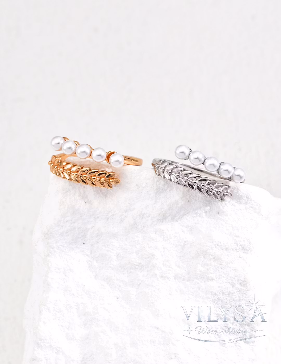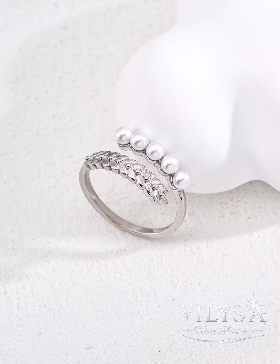 Each textured band is individually sculpted, and every simulated pearl is selected for its consistent, luminous luster—ensuring your ring is a singular expression of contrast and balance.