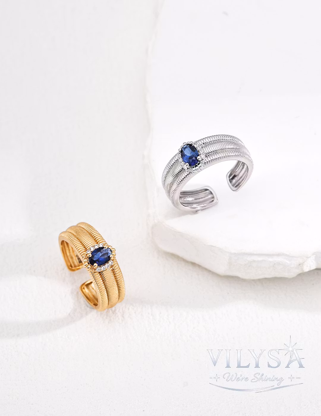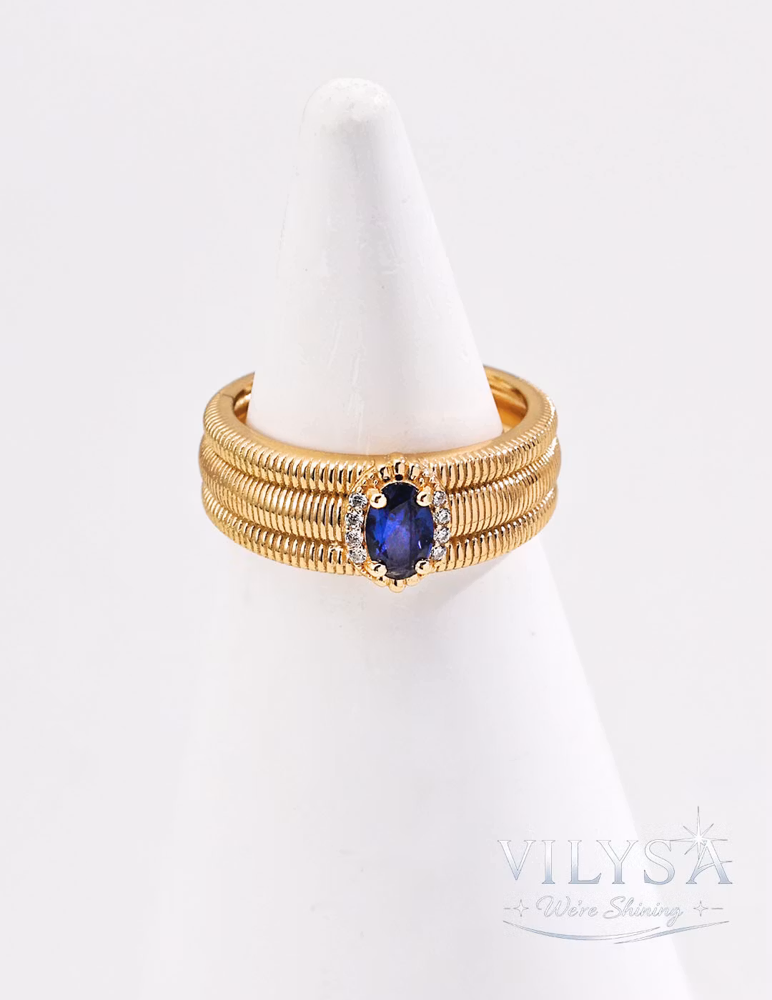 The ribbed texture is precisely finished to echo classical Italian aesthetics, while the sapphire zircon is selected for its vivid, saturated hue—a modern tribute to timeless opulence.