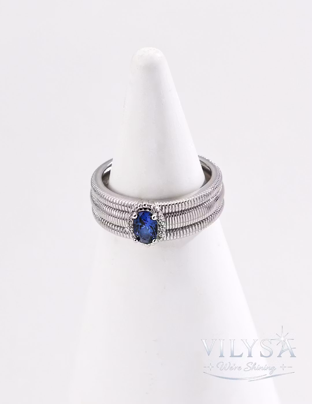 ・Center Stone: Oval-Cut Sapphire Blue Cubic Zirconia
