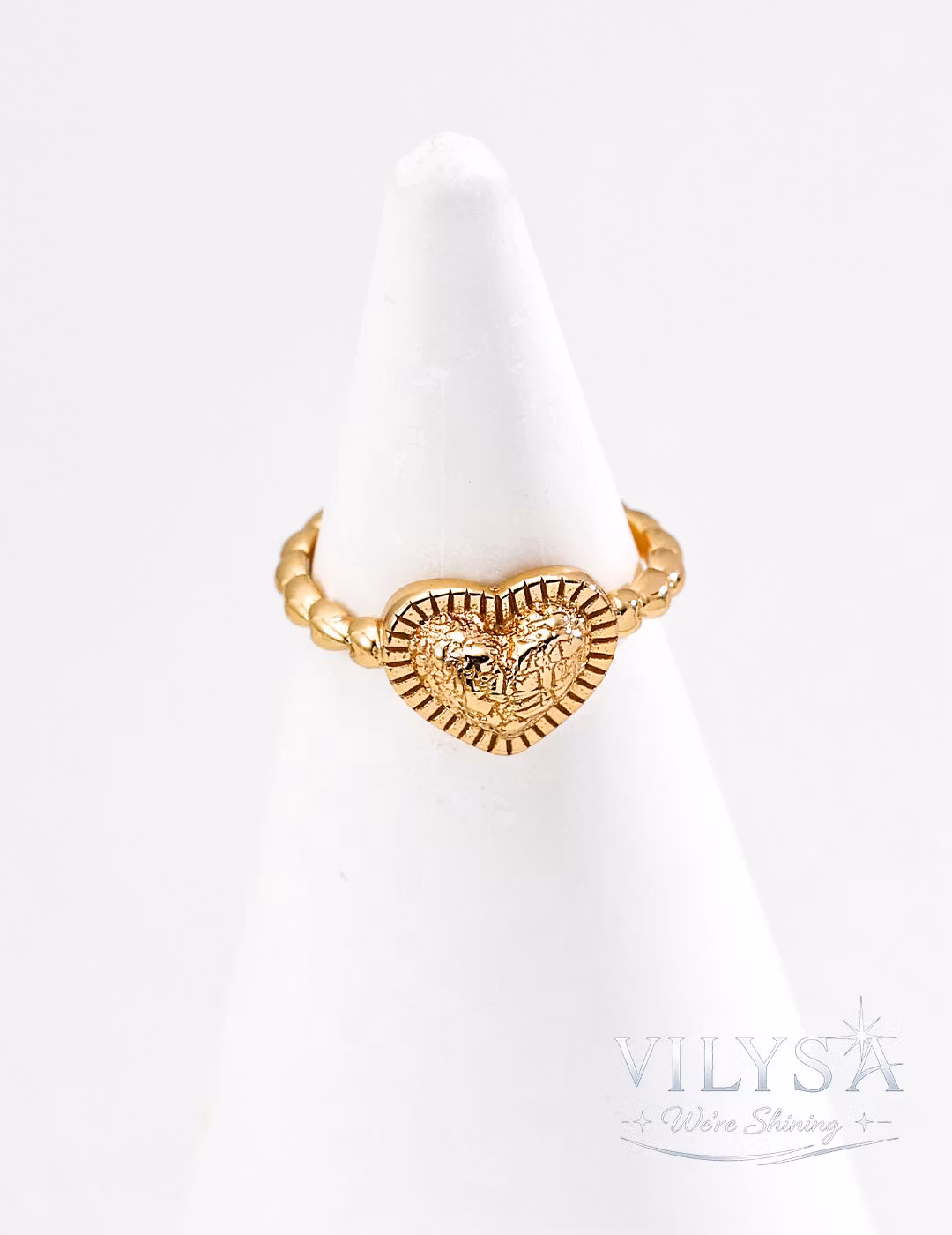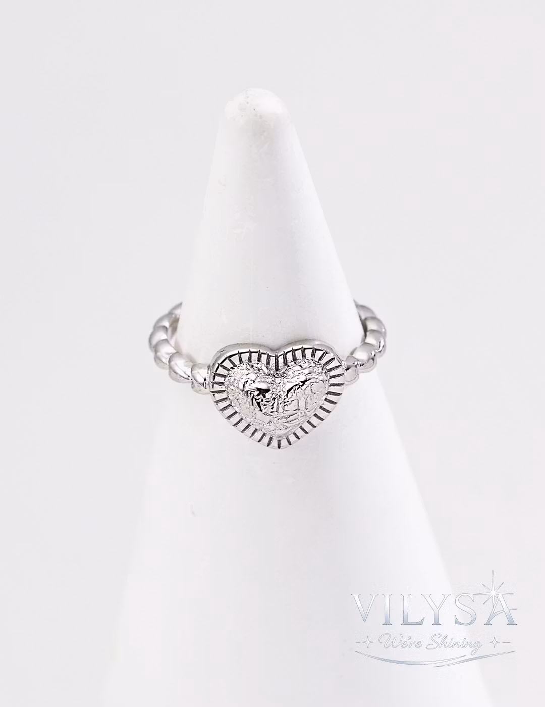 Each ring is finished with attention to detail. The heart's subtle texture and the braided band's rhythm are precisely defined, creating a piece that balances vintage sentiment with contemporary wearability.