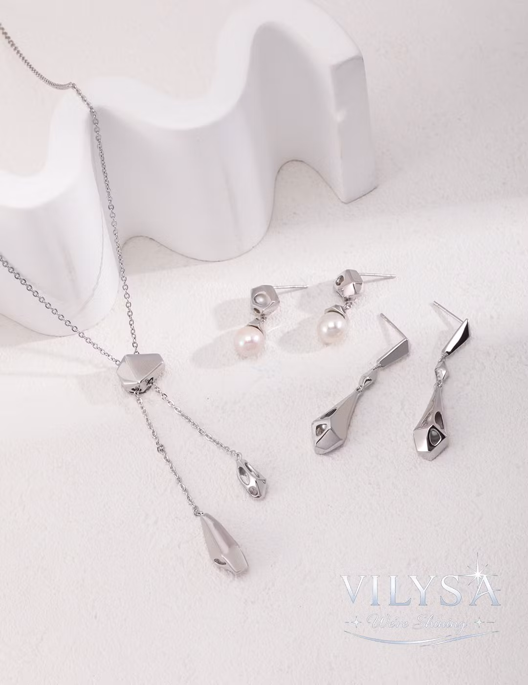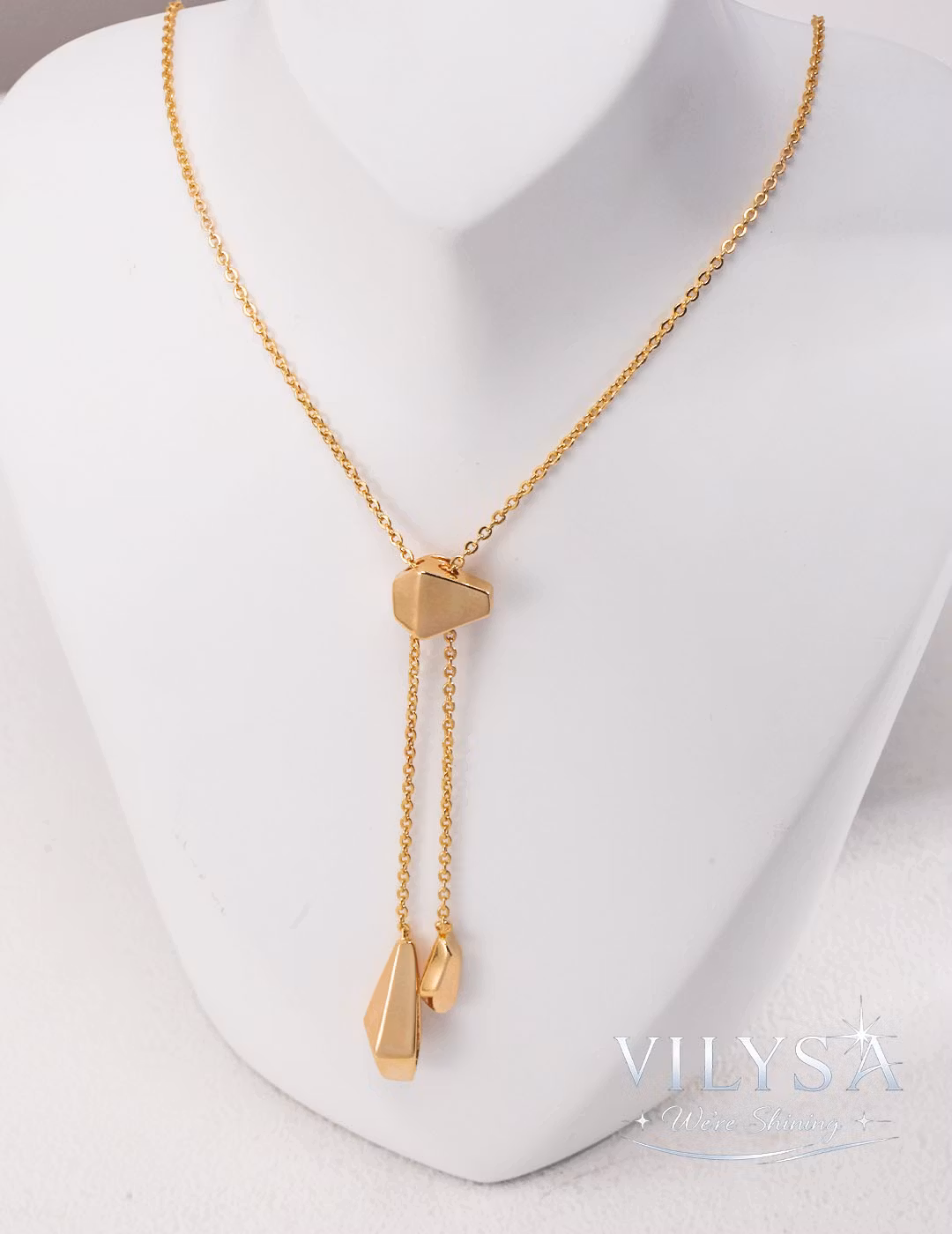 Its smooth, polished surfaces catch soft light with every adjustment and sway, creating a dynamic, layered silhouette that can be worn short as a chic choker or long as a flowing lariat. The irregular geometric shapes lend an artistic, contemporary edge—understated yet full of stylistic character. Perfect for day-to-night transitions, office wear, evenings out, or creative layering.