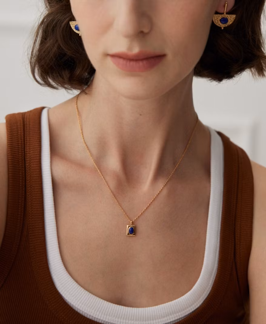 Each pendant is hand-set. Variations in the lapis lazuli’s deep blue hue and natural pyrite flecks ensure your necklace is a unique treasure.