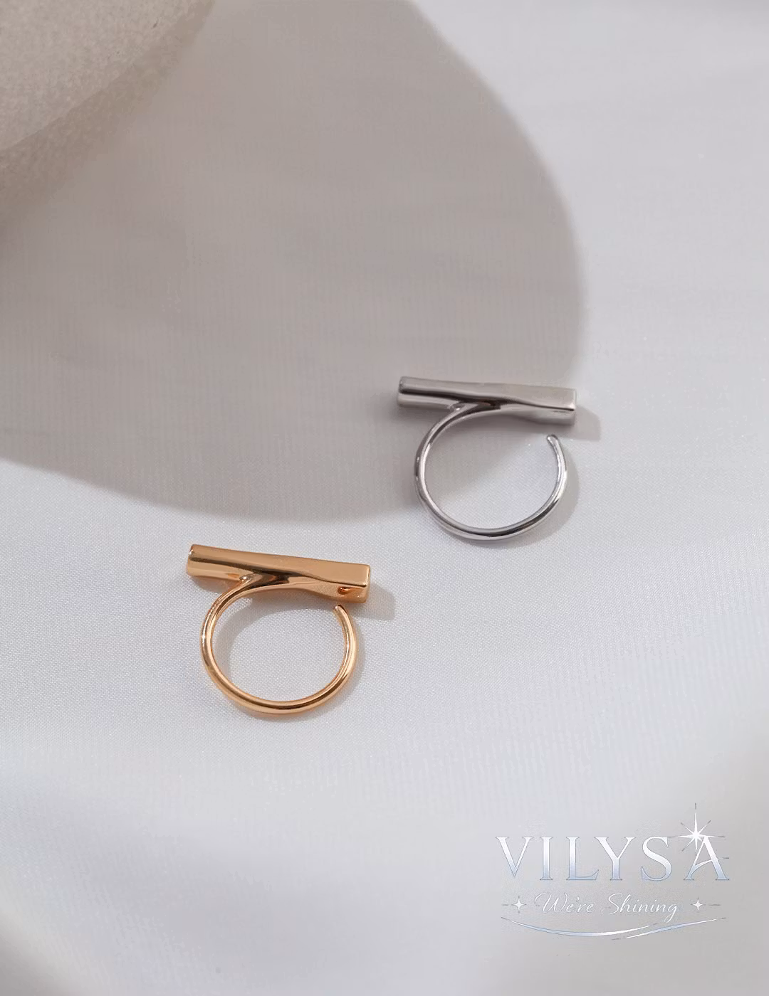 ・Style: Adjustable Open Ring with Rectangular Bar and Circular Band