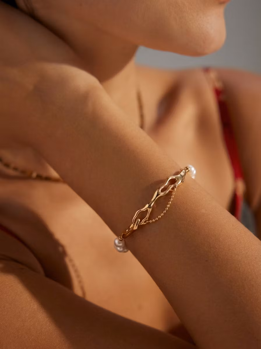 Lightweight and thoughtfully proportioned, the adjustable length ensures a comfortable, personalized fit. Whether worn alone as a subtle signature or layered within a curated collection, this bracelet adds a touch of organic luxury to any look, moving gracefully from day to evening.