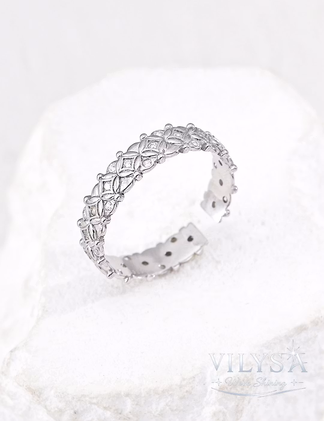 ・Style: Open Adjustable Ring with Intricate Lace-Like Openwork Pattern